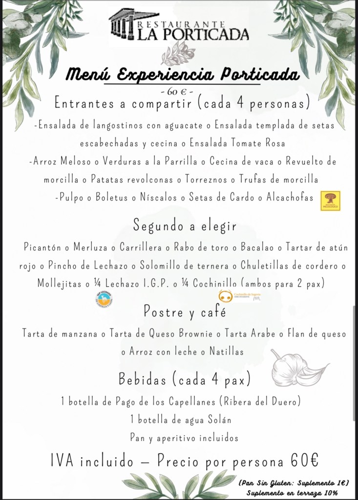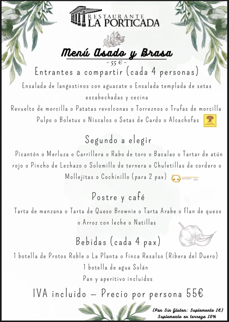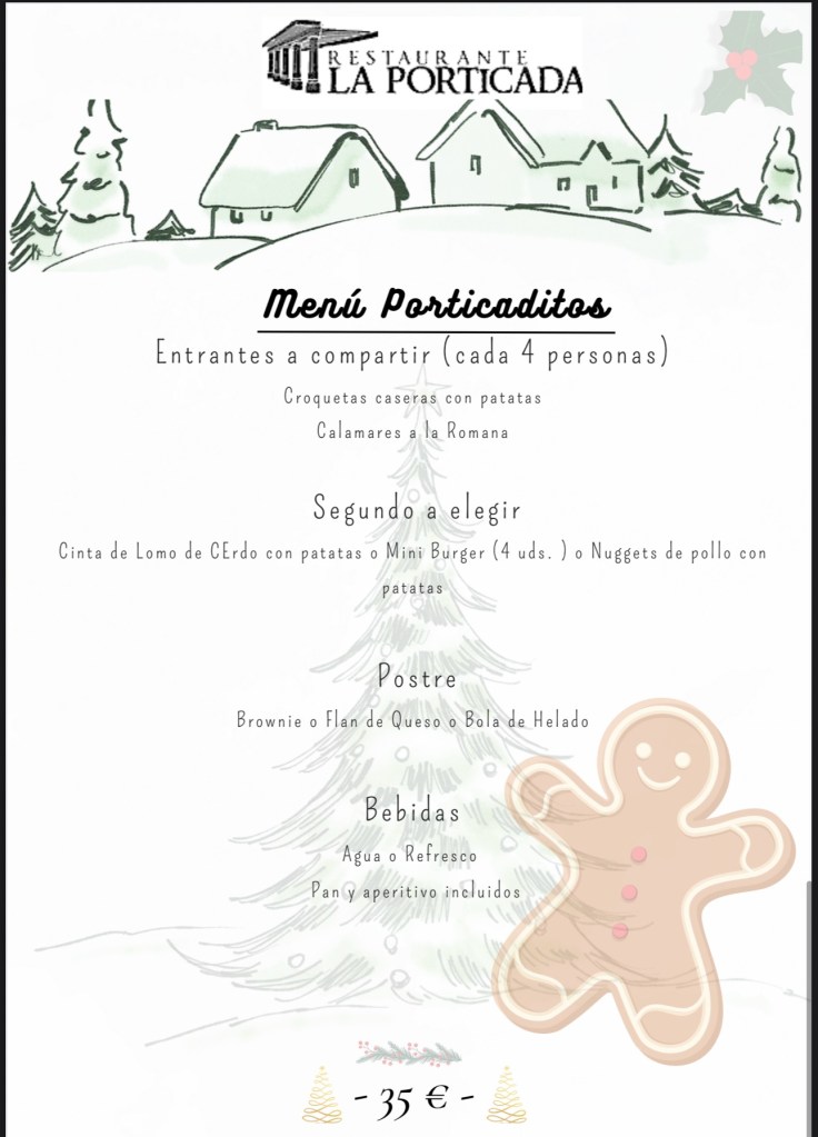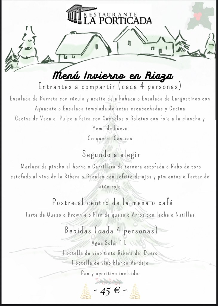 Los días 25 de diciembre (Navidad) y el 1 de enero (Año nuevo) si sois un grupo por comodidad podemos trabajar con los siguientes menús.